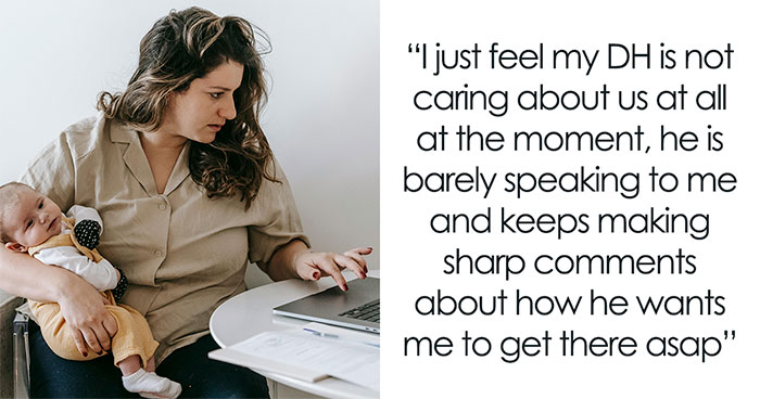 But the OP, who had recently been through travel, wanted to stay home with their baby just a bit longer to allow their child to recover from vaccinations and avoid the disruption of another long journey so soon. She noticed that this has now upset her husband who is barely speaking to her and simply insisting she make it there as soon as possible, whenever he can.