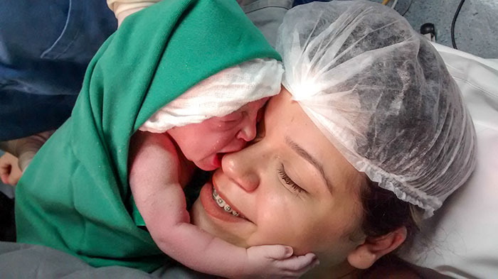 In Santa Monica hospital in Brazil, Agata Ribeiro Coelho was introduced to her mum by doctors after entering the world via C-section. She then immediately clung to her mother Brenda Coelho de Souza’s face and refused to let go, finding comfort in her mom’s gentle presence.