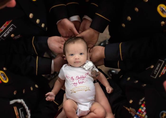 Around 20 men from Chris’ battalion showed up to celebrate the baby girl wearing their military uniforms. The photoshoot touched the hearts of many people, showing a true, beautiful bond. Like Britt wrote, they are “Christian’s great big family.”