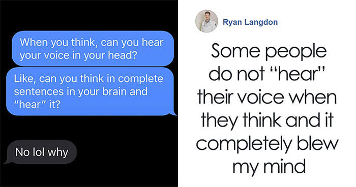 When Ryan Langdon found out that not everyone can inwardly talk to themselves, his mind was completely blown. “It intrigued me because [after] I read it, [I] didn’t believe it could be true,” he told Bored Panda. So, he decided to investigate it to the best of his abilities. Afterward, Ryan compiled his findings and wrote a comprehensive text that immediately went viral.