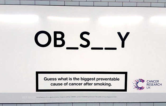 Cancer Research UK started a campaign, informing that obesity is the second-biggest cause of cancer in the UK