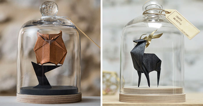 Origami is beautiful yet fragile, but Floriane Touitou found a way to “preserve” her paper foldings. Floriane protects her intricate origami animals by putting them under glass and these decorations produce a unique charming vibe.