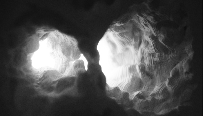 The author explores the relationship between a human and matter and realizes the desire to form the environment reflecting the image of thought. Hundreds of illusions cut from sheets of paper create a harmonious, sculptural object reminiscent of a muted symphony of dreams and ideas. The unsustainable matter embodies the fragility of the moment of the life of thoughts.
