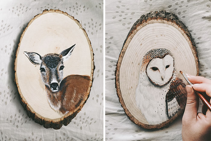 Craving a sense of familiarity I began painting to fill the void of wild animals in my life. I painted animal portraits of jackrabbits, foxes, barn owls, mule deer, black bears, and every animal I missed so dearly until my house was full of them.