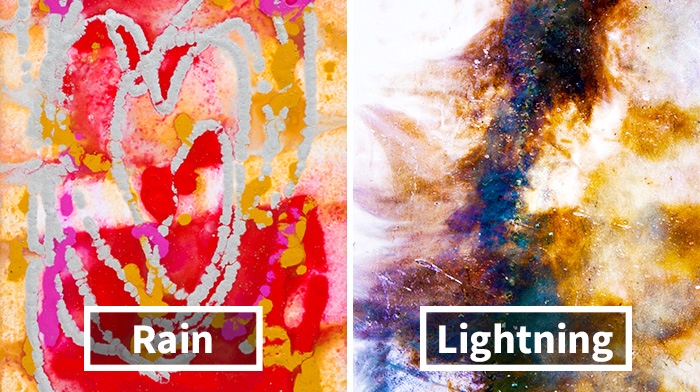 Those paintings drawn by natural phenomena. Those works projects emotion of nature.