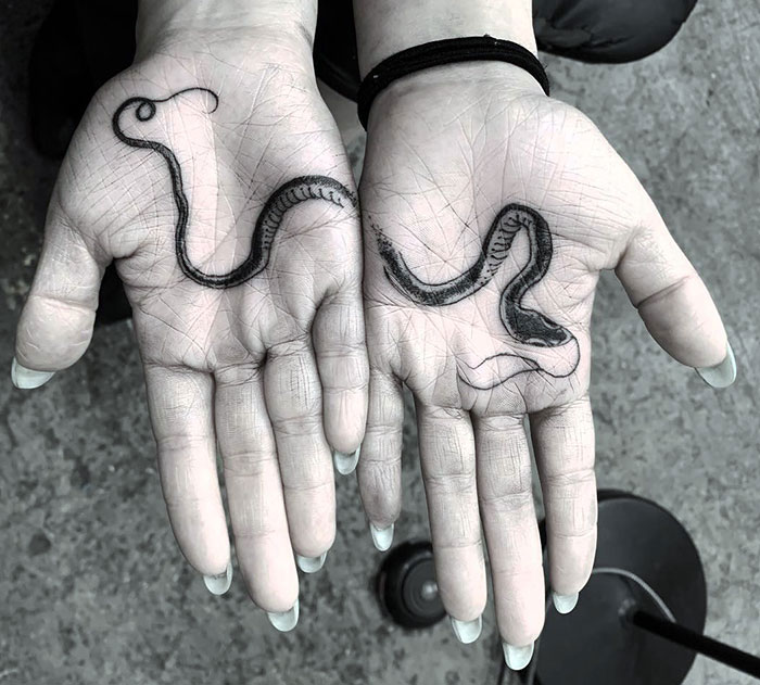 However, a pro tattoo artist who’s very experienced with the needle together with reasonable expectations can result in excellent tattoo design, even if it’s on your wrinkled little fingers! Bored Panda has compiled a list of creative tattoo ideas that fit in the palm of your hand, and their imperfections only add to their uniqueness. From trippy 3D designs to gentle minimal strokes, these pieces definitely deserve the attention they can get!