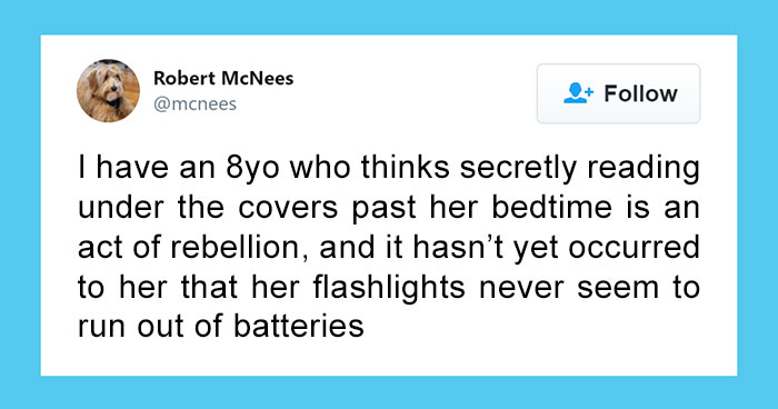 As his tweet was going viral, Mr. McNeesI couldn’t keep up with all the responses. “Most of the ones I saw were very sweet notes of appreciation, or folks just now realizing that a parent did the same thing for them. It’s nice seeing book lovers reminisce about how they pulled off their childhood reading capers — I think my favorite was the person who would crawl all the way underneath their bed, where they could read next to a nightlight without being seen.”
