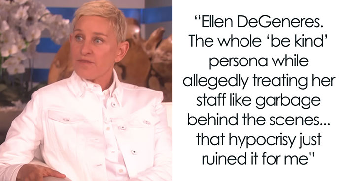 Ellen DeGeneres. The whole “be kind” persona while allegedly treating her staff like garbage behind the scenes… that hypocrisy just ruined it for me.