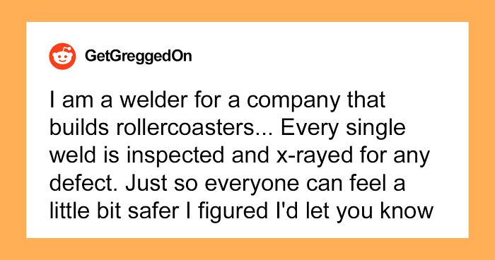 I am a welder for a company that builds rollercoasters… Every single weld is inspected and x-rayed for any defect. So I guess this doesn’t apply but just so everyone can feel a little bit safer I figured I’d let you internet people know.
