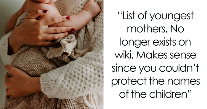 List of youngest mothers. No longer exists on wiki. Makes sense since you couldn’t protect the names of the children.