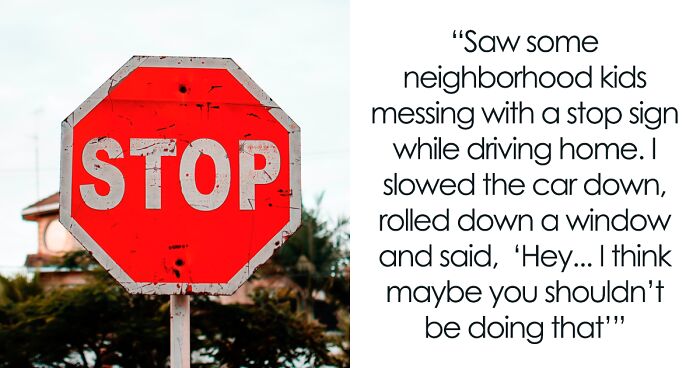 Saw some neighborhood kids messing with a stop sign while driving home. I slowed the car down, rolled down a window and said,