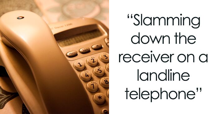 Slamming down the receiver on a landline telephone. Pushing the red button is not nearly as satisfying.