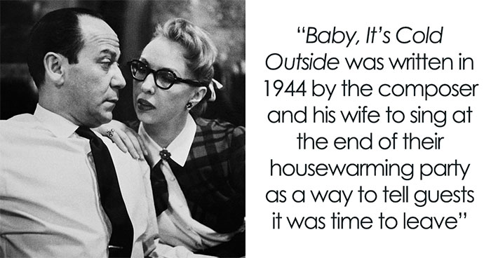 TIL that “Baby, It’s Cold Outside” was written by composer Frank Loesser in 1944 for he and his wife to sing at the end of their housewarming party as a way to tell guests it was time to leave. Afterwards, they were invited to tons of parties with the expectation of the song being the closing act.