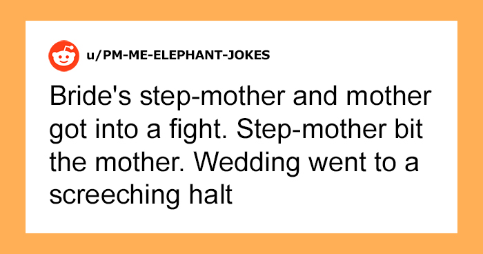 Bride’s step-mother and mother got into a fight. Step-mother bit the mother. Wedding went to a screeching halt.