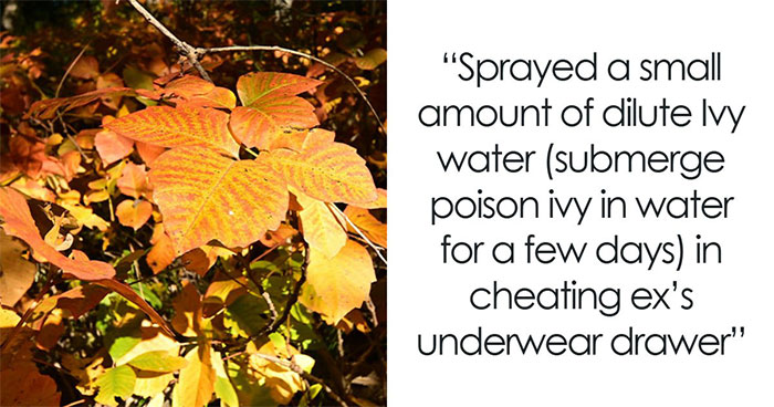 Sprayed a small amount of dilute Ivy water (submerge poison ivy in water for a few days) in cheating ex’s underwear drawer. Worked like a charm… She freaked out thinking she caught some sort of STD and lashed out violently at the guy she was cheating with for having given her an STD.