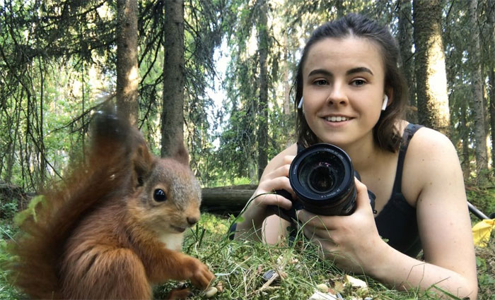 Two weeks ago, Dani found her body next to the road after Remy was fatally injured by a car. “I was devastated, not only was she my favorite squirrel but somewhere in the forest, she had a drain full of kits, or baby squirrels. I then went to the forest to search for the drey, it was an impossible mission,” Dani recalled. “I was very lucky to find where the baby squirrels were! I spoke to several wildlife sanctuaries and the advice I was given was that the baby squirrels are too small to survive on their own and if their mother had been killed by a car, they need to be captured and raised in captivity. I watched over the baby squirrels and I was so happy to see them eating the food I had left them, I decided that if they have teeth and that they can eat, they should be able to survive in the wild.” Since then, Dani has been going to the forest for 4 to 6 hours every day and has gotten really close with the baby squirrels.