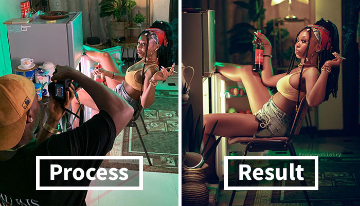 In the world of Instagram and perfectly polished pictures, oftentimes we forget to think about what’s behind the beautiful lighting, clothes, or editing. Ibor Edosa Victor, a talented photographer from Nigeria, isn’t afraid to show the “behind the scenes” of his photoshoots rather than just the perfect results. This may be one of the reasons why the artist has over 240K followers on Instagram.