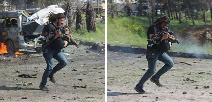 A war photographer’s instinct is to take photographs, regardless of what’s happening in front of the lens. But when a massive explosion took out a convoy of buses filled with evacuees in Syria recently, it wasn’t Abd Alkader Habak’s photographer instinct that kicked in: it was his human instinct that made him put his camera down and pick up a boy badly injured by the blast.
