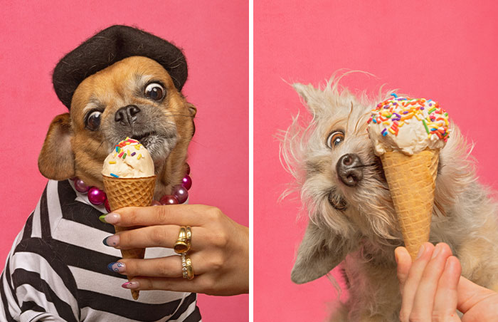 I’m a pet photographer based in Los Angeles and in 2013 I started throwing annual Ice Cream Socials for Dogs. I was shocked at how human these dogs’ faces looked when they met the cone!
