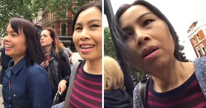 Thai tourists Nina Spencer and Toi were walking through London vlogging