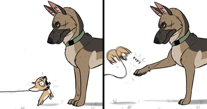 “Honestly, Pixie and Brutus were just another random webcomic idea I had while at work,” Ben told Bored Panda earlier. “I was never planning on making these cute drawings a series, and I just thought it would be a funny idea to introduce a cute little kitten to a big intimidating war dog. So I made the first Pixie and Brutus comic, and people liked it so much I just kept making them.”