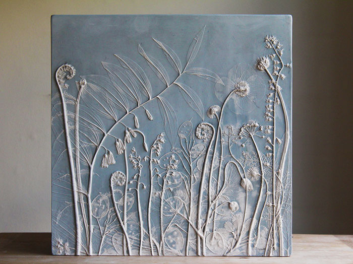 In 2012, Rachel Dein showed the owners of a flower-shop a plaster-cast tile she had made from a bouquet. They were impressed, and soon the UK artist began receiving commissions to make more of these modern “fossils.” Dein’s method is simple: she presses beautiful flowers into wet clay and then pours in a mixture of plaster and concrete to produce a fossil tile. The dry tiles can be left unadorned or be painted. “I enjoy the magic of this art medium to create fossils from everyday life,” Dein writes on her website. “Whether it’s a shell found on holiday, your grandmother’s treasured lace, a Christening gown, or the flowers from your wedding.” You can find more of her unique art on Dein’s website, and see pieces for sale on Etsy.