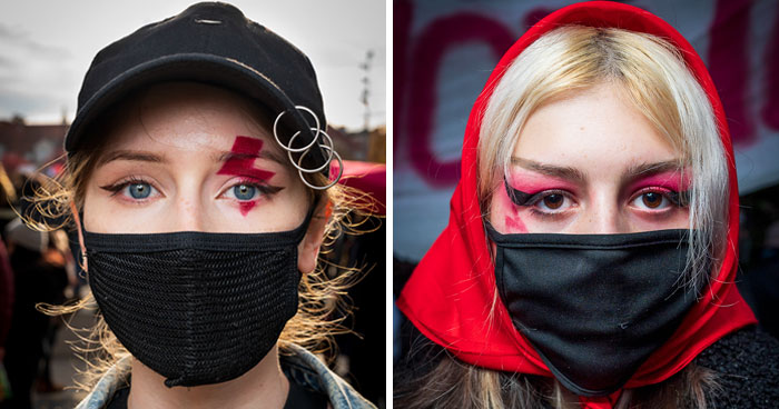 Nationwide protests against a recent court ruling that tightened Poland’s restrictive abortion law further. The court effectively banned almost all abortions. The symbol of the fight against the new law was the sign of red lightning visible on the faces and masks of the participants.