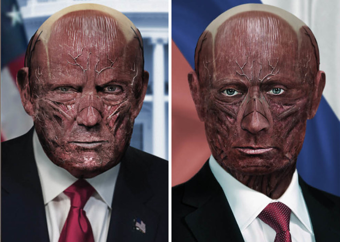 We wanted to show how fragile humanity is. There’s so much negativity in the world at the moment, we thought that through stripping away this outer layer of skin, this one millimeter that encases us all, we could show how we are all the same inside. Each artwork was a labour of love. I experimented with many techniques to ensure that even with the removal of skin, you could immediately tell who each world leader was. The result is a series that is unlike any other. Watch the “Behind the scenes” video here.