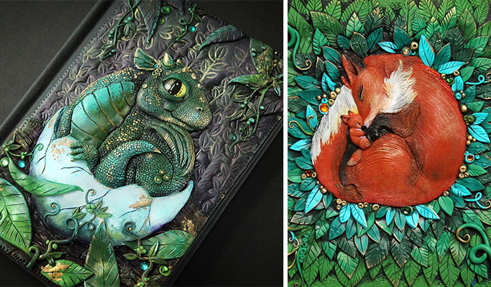 Then, in May 2015 came out a post about my personalized journals here on Bored Panda. Literally in 1 day, I gained thousands and thousands of new likes, e-mails, questions, requests, interviews, reposts on other viral websites and in 1-2 week’s time I was booked for the next 6 months upfront to make clay book covers and jewelry for all those wonderful people who saw me on Bored Panda and appreciated my work.