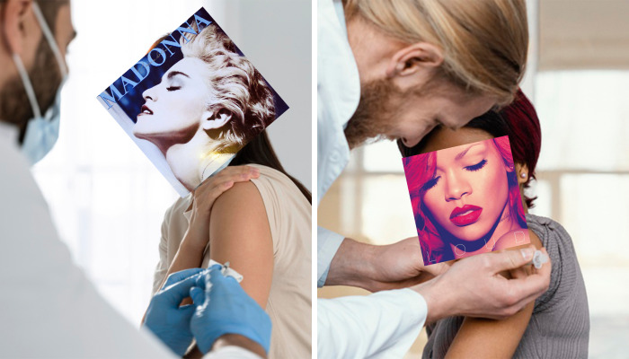 This is to increase awareness and conversations regarding vaccination against Covid-19. I combined pop album/single covers with vaccination photos. The results are funny and tongue-in-cheek collages.