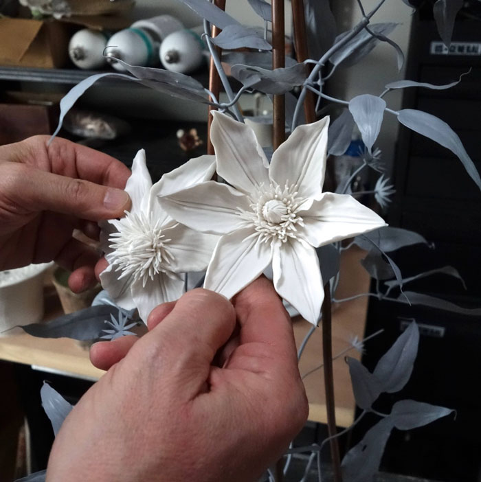 Vladimir crafts the leaves and stems from painted copper, because if made from porcelain they would break too easily