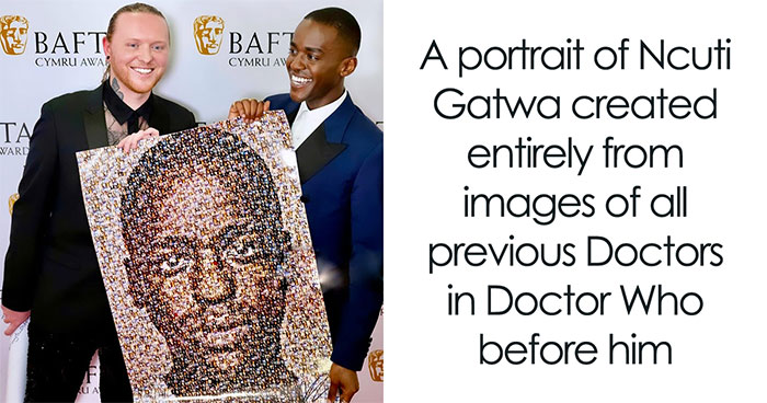 A portrait created entirely using images of all previous Doctors in Doctor Who before him.