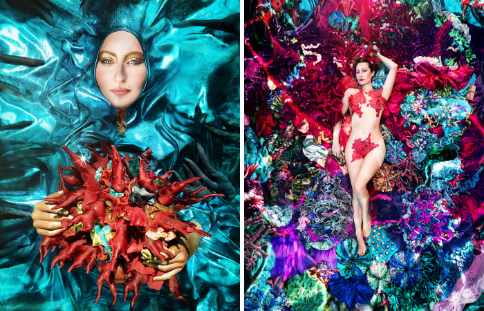 She is stirred by a passion for story telling, textile and beauty within nature, otherworldly wearable costumes and creatures from the deep sea. Moved by thoughts about infinite parallel universes and transient life forms.