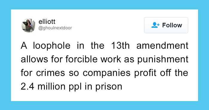 Recently, a Michigan State University student started a twitter thread about an important issue within the American incarceration system. Turns out, the legality of slavery is still up for debate even over a hundred and fifty years after the end of the Civil War. Though the U.S. Constitution was amended to prohibit both slavery and involuntary servitude within the country, it left a loophole to potentially exploit people who are convicted of crimes, roughly 2.3 million Americans.