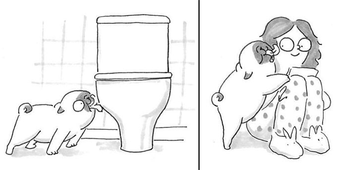 Gemma Gené is a multi-skilled artist from Barcelona, Spain, currently based in New York. Gemma draws, paints, and creates sculptures, but she’s best known for her adorable comic strips that every dog owner relates to. The artist shows the special bond between an adorable dog and the owner through cute cartoon drawings.