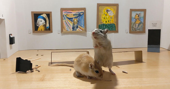 Everyone is coping with the current global situation in different ways. Some people eat through their snack stash, while others binge-watch Netflix or relive their favorite moments by going through old photos. Well, this London couple found a pretty unique way to brighten their day. They created a miniature art museum for their pet gerbils to explore.