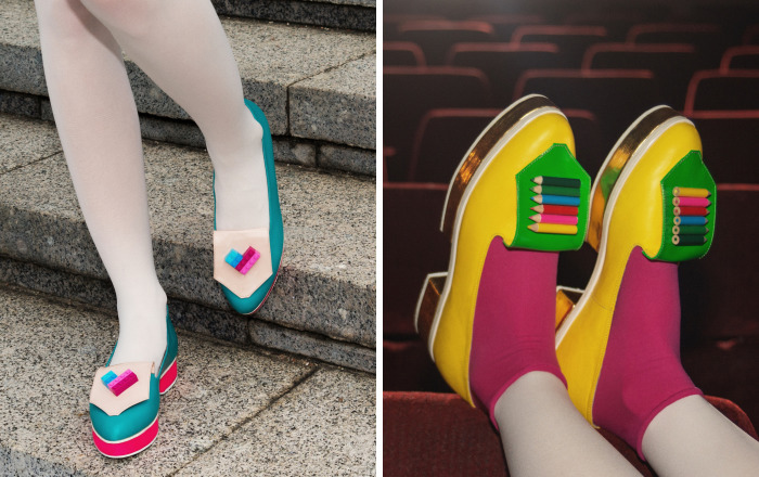 My grandpa’s wristwatches, Lego bricks, playing cards, and many other things from my childhood looked like perfect details for magical shoes. I mean shoes with real attached items and not some superficial decorations.