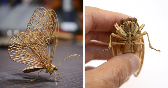 This incredibly talented sculptor from Japan creates intricate life-size sculptures of various insects. The artist uses bamboo as his main material and tries to create lifelike creatures. “We are not preparing specimens and replicas, we strictly measure the dimensions and prioritize the appearance, features, and senses rather than proportions being exact,” says the artist.