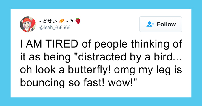 The Twitter user pointed out how tired they are of people thinking of it as being “distracted by a bird… oh look, a butterfly! Oh my god, my leg is bouncing so fast! Wow.”