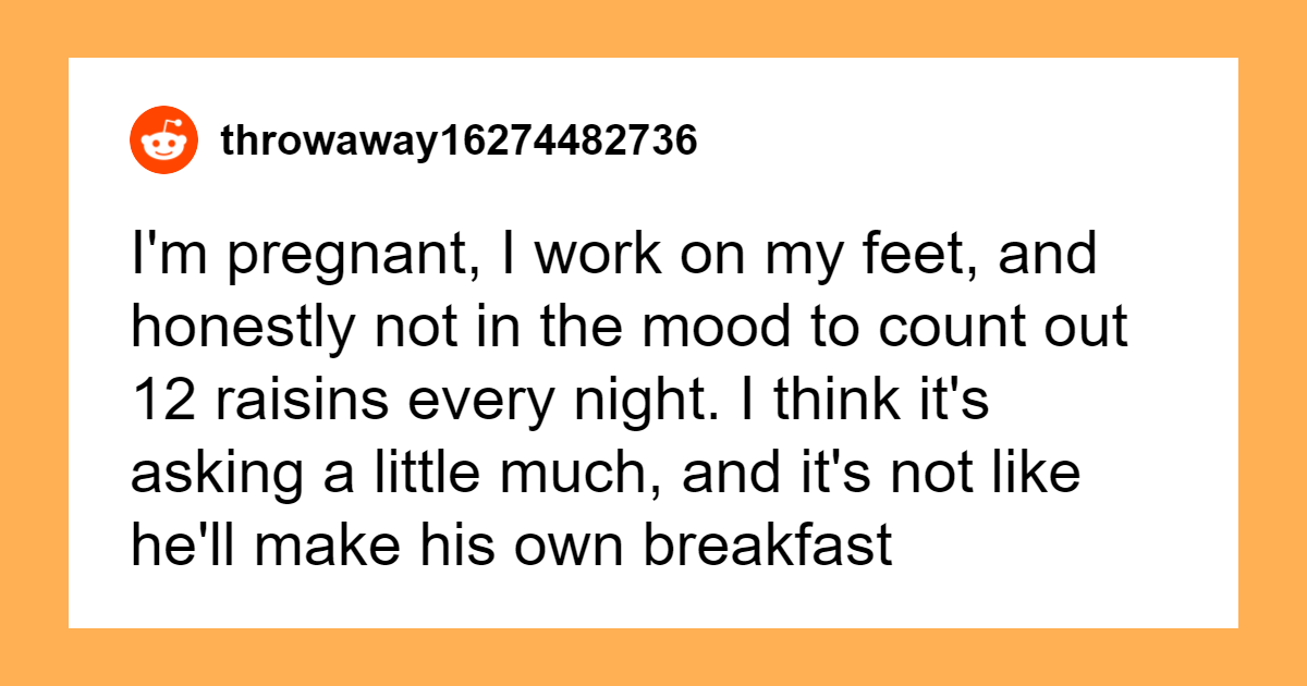 This woman had to deal with her husband’s tantrum over oatmeal. As the guy was very particular about the number of raisins he wanted in his breakfast, he exploded in rage when she put 18 instead of the usual 12 raisins in his oatmeal. The wife asked other netizens if she was a jerk for not counting them that one time, or was the husband at fault here?
