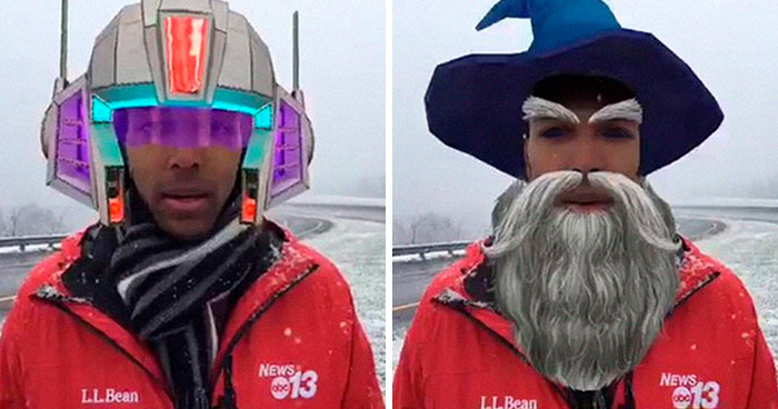 In areas where heavy snowfalls aren’t common and drivers aren’t very familiar with slippery roads, weather reports like this one can be a useful way to remind them to remain extra careful while sitting behind the wheel. But with the added comedy on video filters? They’re priceless.