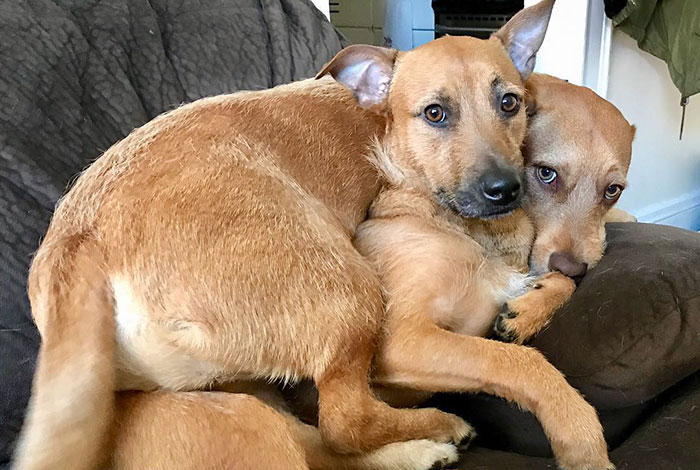 “Rogue and I were out for a nice long walk to our local farmers market when we saw Beast,” Coleman told Bored Panda. “He was there with Last Hope K9 Rescue and a bunch of other dogs that were all up for adoption. What made me want to rescue Beast over the other dogs was that he looked just like Rogue. They’re both cairn terrier mixes, Rogue’s mom was a lab/pit mix and her dad a cairn and with Beast we’re just not sure, it just has cairn mix I. His paperwork but we think he’s mixed with Basset due to his body type, he looks like a pig and has even been mistaken for a pig a couple times.”