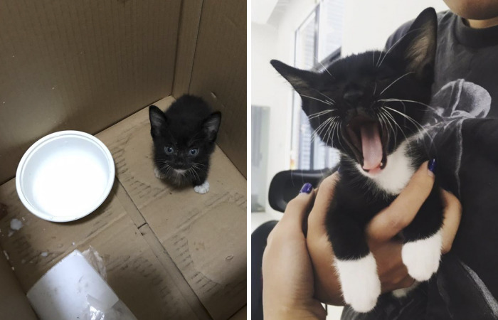 First time to meet his new momma, who named the little feisty tuxedo Lucifur
