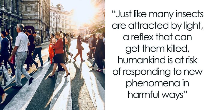 “Just like many insects are attracted by light, an evolutionary reflex that can get them killed in the modern world, humankind is at risk of responding to new phenomena in harmful ways.”