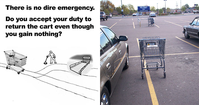 The study, published in the journal Cognition, determined that people who answered ‘Yes’ had higher scores on measures of psychopathy, Machiavellianism, and life meaninglessness compared to those who chose not to push the innocent man. Also, fun fact, the illustration for The Shopping Cart Theory looks as if it was done based on The Trolley Dilemma. Who knows, maybe it inspired this whole thing.