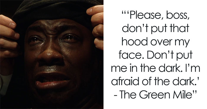 “Please, boss, don’t put that hood over my face. Don’t put me in the dark. I’m afraid of the dark.” – The Green Mile.