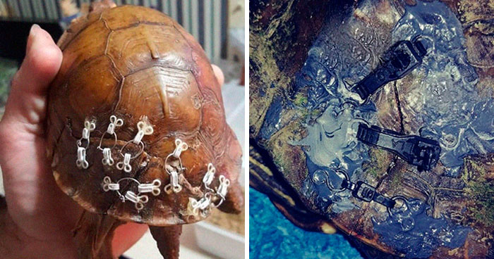 The shell of a turtle is more than just a cover, it’s a vital part of the animal’s skeleton that protects its organs. And although pet turtles are usually safe from the dangers that might crack it, wild ones aren’t so lucky. Fires, and especially cars often damage them, causing serious consequences. However, not every injury they inflict is fatal. With proper care, cracked turtle shells can be fixed, and one wildlife organization has come up with a genius way to do so. Recently, Wildthunder Wildlife & Animal Rehabilitation & Sanctuary took to Facebook, asking for discarded bra fasteners: “We use them to mend our turtle shells!” they wrote. People immediately heard the message and donations started pouring in.