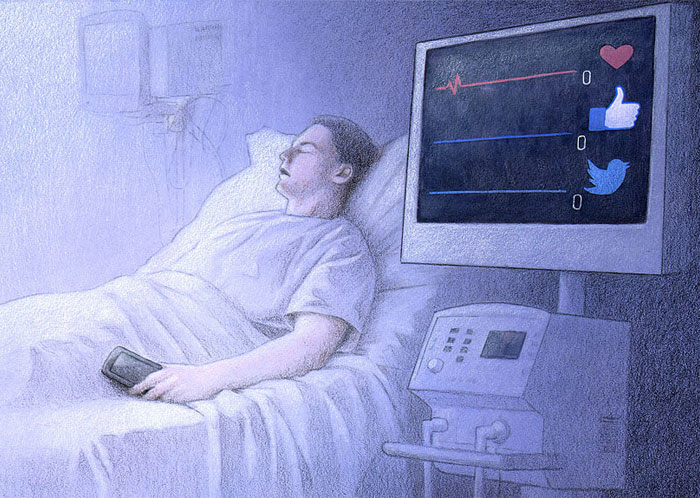 Kuczynski’s works are themed to include topics such as societal pressure, mental health issues, and the negative effects of social media addiction. In his illustrations, one can often notice that his artworks tend to portray the loneliness that some might experience while immersed in the world of social media, from forever chasing “likes” to the constant upkeep of online personas. These last few themes have become even more prevalent given the current global pandemic.