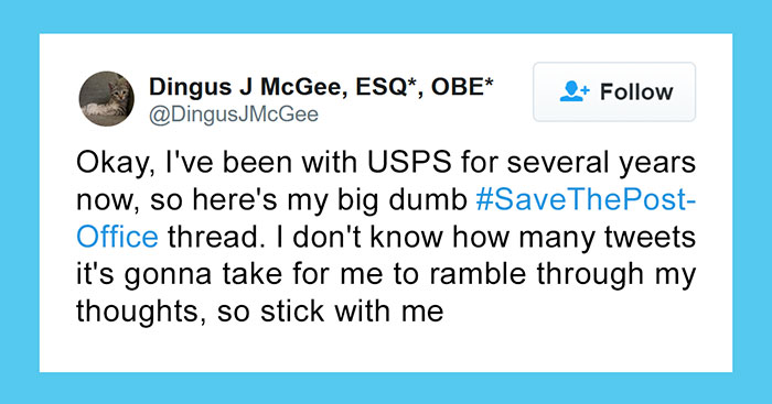 One of them is a man who called himself Dingus J. McGee. He recently started a powerful Twitter thread advocating for everyone to pay attention and help out the USPS. His arguments not only touched the political and economical side of the story, but also were directed at a more sensitive, emotional side. Bored Panda reached out to McGee for additional comment and he provided some information.