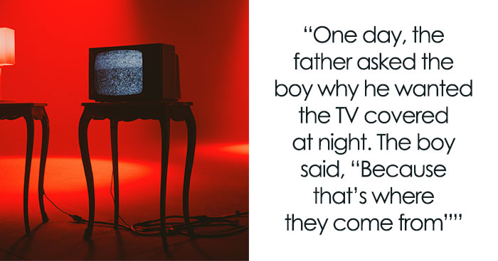 A couple lived with their only son in a house on the outskirts of the city of Spain. The boy’s room had an old television which he would ask to be covered with a cloth every night as he went to sleep. One day, the father asked the boy why he wanted the TV covered at night. The boy said, ”Because that’s where they come from”. The parents ignored the comment, thinking it was his imagination. One night, the parents had to go out, so they hired a babysitter to stay with their son. When they returned late at night, they found the babysitter sitting outside the home, mumbling, “They took him away.” Confused parents rushed into the boy’s room and found that the television cover was off and the boy was gone.